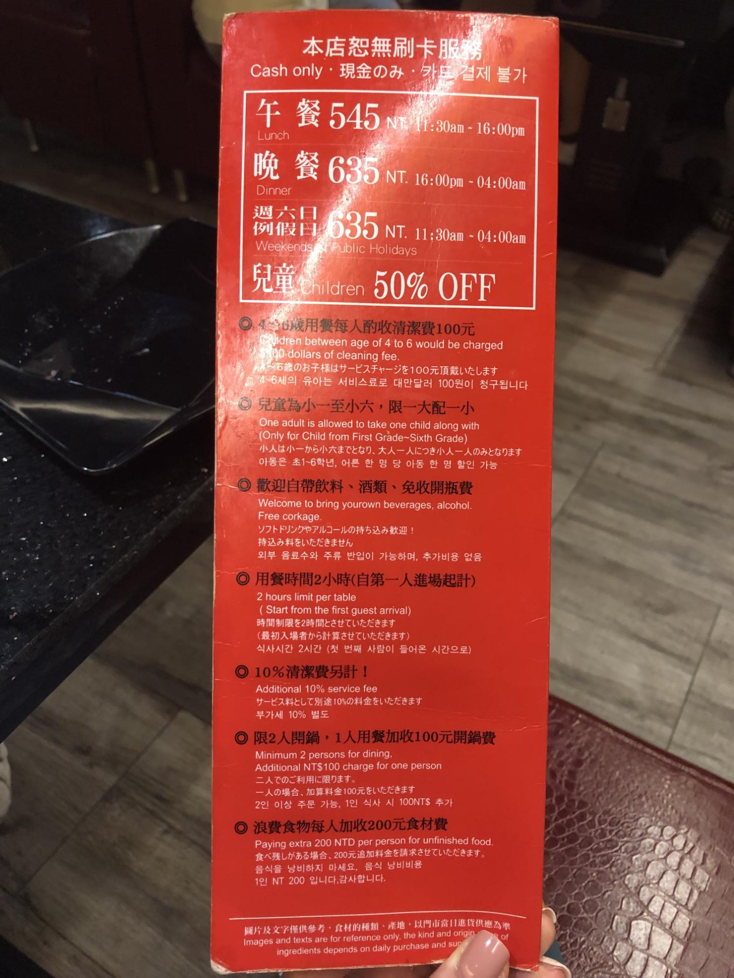 대만에서 유명한 훠궈 무한리필 가게에 다녀왔어요.
